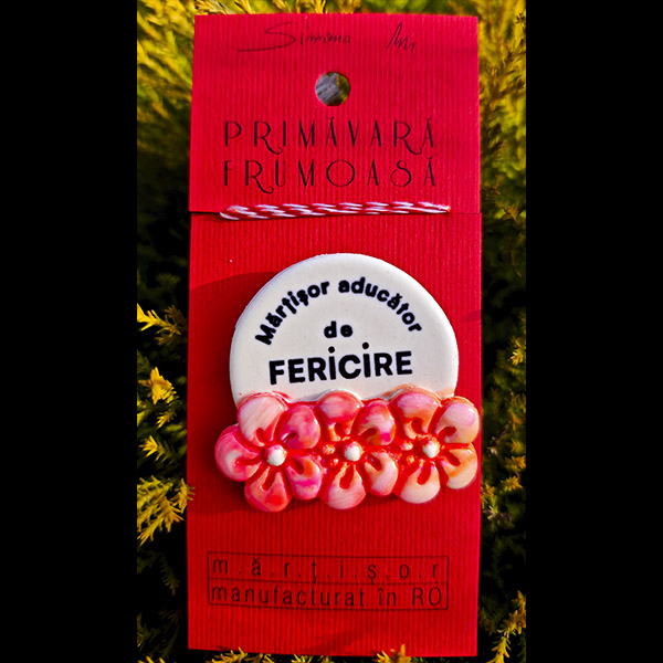 Martisoarele sunt realizate manual dintr-o pasta ceramica, pictate cu culori acrilice si lacuite cu lac ecologic.