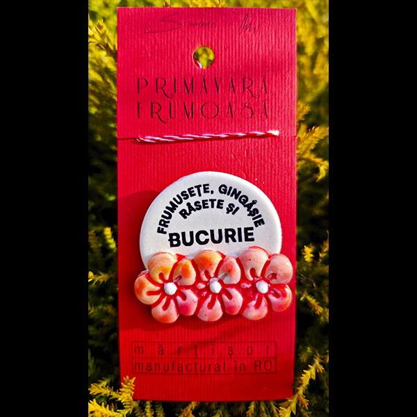 Martisoarele sunt realizate manual dintr-o pasta ceramica, pictate cu culori acrilice si lacuite cu lac ecologic.